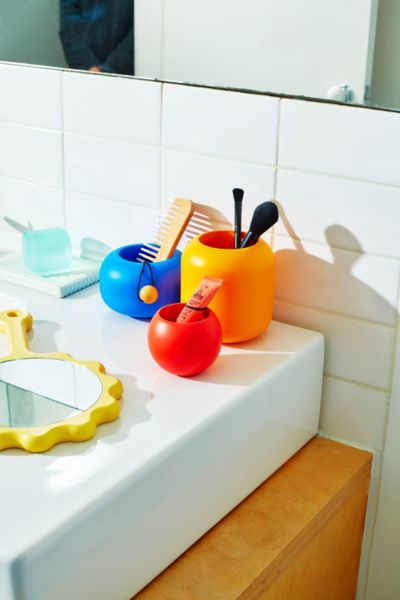 A set of stackable containers to hold various odds and ends, jewelry, desk accessories, or whatever little thing you like. Its design is based on form and color, creating a sculptural object when stacked together and conspicuous catchalls when set out on their own. Content + Care Hardwood, water-based paint Store in a cool, dry place. To clean, wipe with a soft, damp cloth. Not food safe. Imported Size Lid (Red), 3 x 3 x 2.43 in Small Container (Blue), 4.3 x 4.3 x 2.7 in Large Container (Yellow), 4 x 4 x 4.45 in Areaware Multicolor Stack Container Set at Urban Outfitters