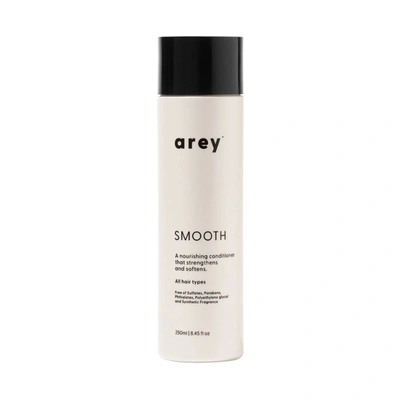 Smooth Conditioner. This product is: . A nourishing conditioner with antioxidants and extracts that work to retain moisture inside the hair strand and leave a conditioning barrier on the exterior.. Good for:. All hair types, including hair that shows signs of aging, or has been exposed to heat styling, color, or chemical treatments. . . Why we love it:. Arey Smooth Conditioner has been formulated to deliver a healthy-feeling hair strand that is not left looking weighed down. Arey Smooth approaches conditioning from both inside and out. Panthenol helps retain moisture in the hair strand while hydrolyzed barley protein adds density to strengthen. Jojoba oil fills in any gaps on the outermost layer of the hair strand, and shea butter adds a protective barrier from environment or styling, leaving the cuticle smoothed.. Fragrance Descriptions:. . 100% natural fragrance from cedar and sage. . .