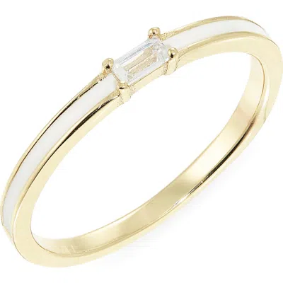 A bright baguette-cut cubic zirconia setting beautifully complements the light enamel on this slim ring that adds a modern touch to your stack. Sterling silver/18k-gold plate/enamel/cubic zirconia Imported