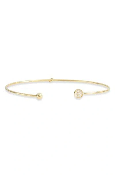 Perfect to stack or wear solo, this open bangle bracelet is framed by a pavé cubic zirconia circle and a dainty ball cap for sweet shine. Goldtone plate/cubic zirconia Imported