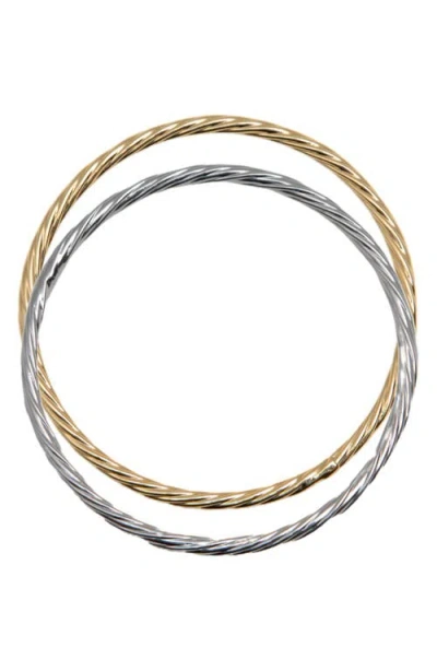 Sterling Silver Two-tone Twisted Bangle Set In Metallic