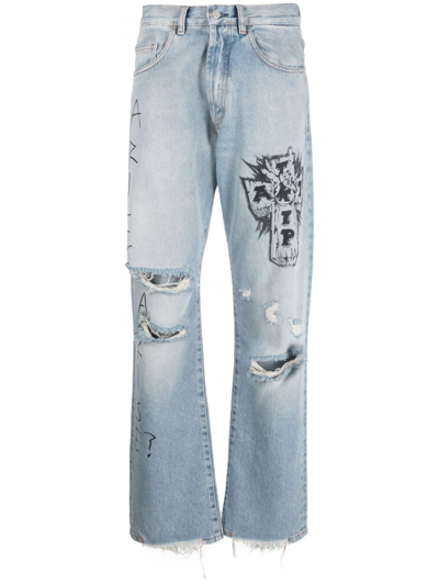 ARIES Distressed-effect Wide-leg Jeans In Blue