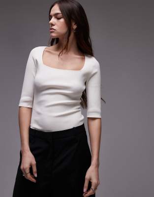 Tops by ARKET Now that's what we call a staple Plain design Square neck Three-quarter-length sleeves Regular fit