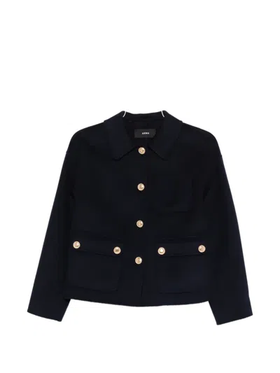 night blue gold-tone hardware patch pockets button fastening point collar long sleeves