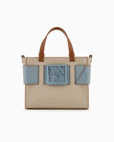 ARMANI EXCHANGE Medium Tote Bag With Double Handles And Shoulder Strap In Beige