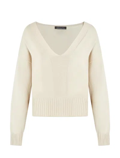 beige v-neck ribbed hem long sleeves ribbed cuffs logo patch