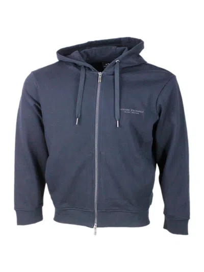 Sweatshirt with hood and zip closure made of soft cotton and logo written on the chest