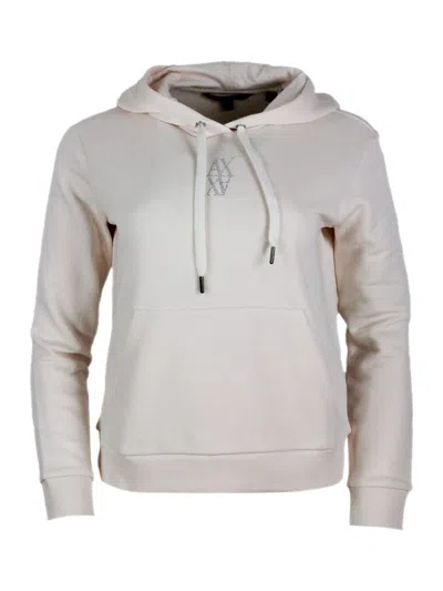 Crewneck hoodie made of soft cotton with kangaroo pockets and bright logo on the front