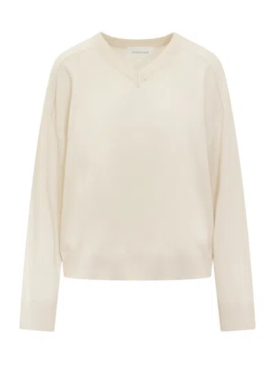 Long-sleeved sweater. V-neck. Ribbed collar, bottom and cuffs. Knitted knit.