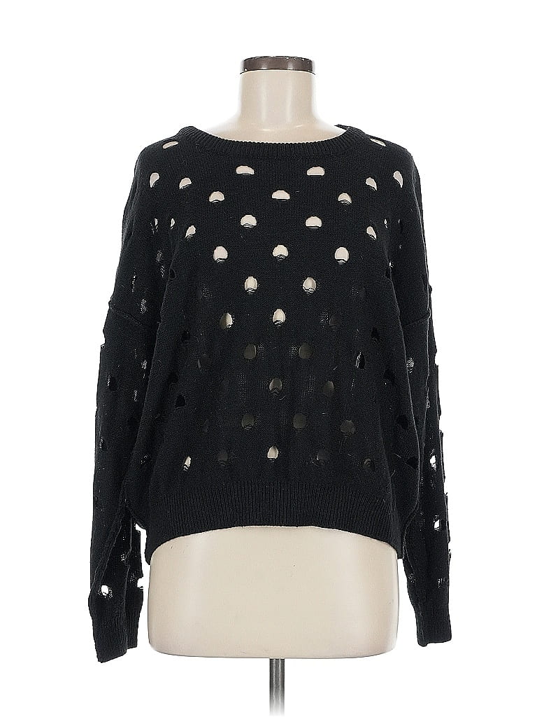Aro Pullover Sweater, Size: Medium. Item Details: Black, Polka Dots Pattern, Keyhole Neckline, Long Sleeve, Studded, Women's Tops, 100% Acrylic