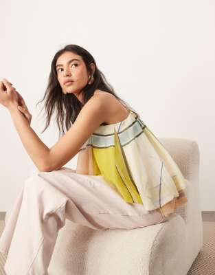 Tops by ARRANGE Check design Square neck Tie straps Button-keyhole back Puff hem Regular fit