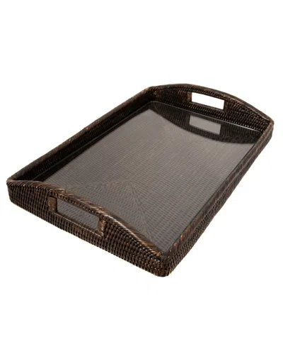 ARTIFACTS TRADING COMPANY Artifacts Rattan 21" Rectangular Tray With Glass Insert In Dark Brown
