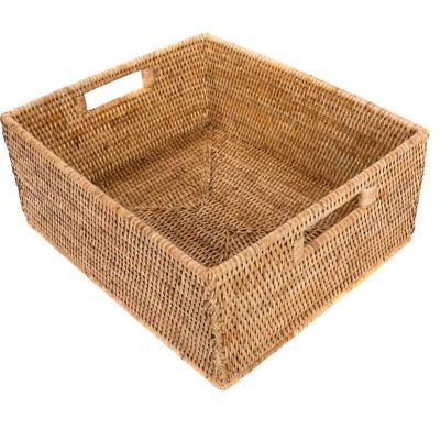Dimensions (inches): Small 14"x12"x6" Medium 20"x16"x6"A good storage basket is not only functional but must fit into your home decor as well. Our rattan storage basket will add organization and style to any room and will also add beauty and elegance to your life. This basket will help you add that extra bit of storage that can make a real difference and keep your space tidy. Woven from Burmese rattan which is natural and sustainable, our products come stained in Honey-Brown, Tudor Black, or White Wash. Products are handmade and each piece is unique therefore slight variations and imperfections exist. Hand Woven by Local Artisans from Burmese Rattan Natural and Sustainable Product Wipe Clean with Damp Cloth