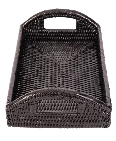 ARTIFACTS TRADING COMPANY Rattan Rectangular Vanity Tray With High Handles In Tudor Black