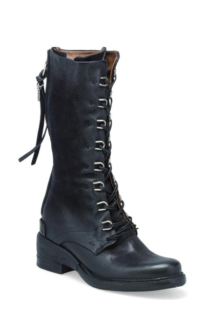 Front lacing plays up the old-school appeal of a block-heel boot complete with a back zipper for easy on and off.