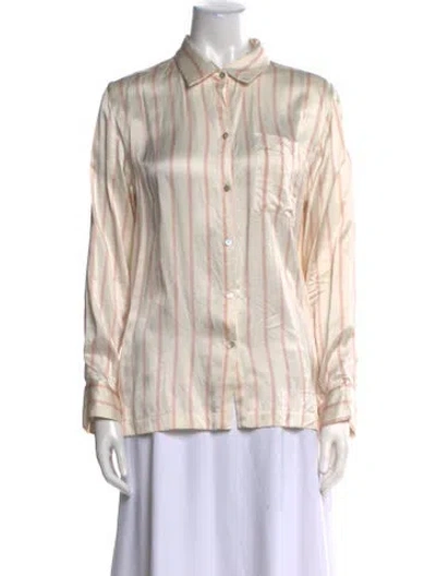 Asceno Silk Button-Up Top Neutrals & Pink Printed Long Sleeve with Collar Fit: Tops by Asceno typically fit true to size. | Asceno Silk Printed Button-Up Top in Neutrals/Pink, Women's S