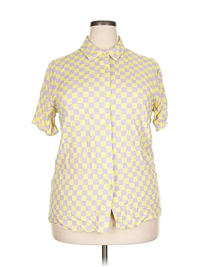 Ascot and Hart Short Sleeve Blouse, Size: 2X-Large. Item Details: Yellow, Checkered/Gingham Pattern, Square Neckline, Women's Tops, 100% Rayon, Runs Small