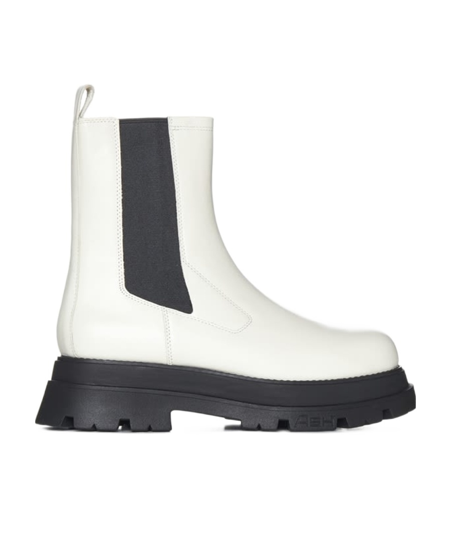Elite 03 leather ankle boots from ASH featuring cloud white, calf leather, pull-tab at the heel, elasticated side panels, branded leather insole, round toe, chunky rubber lug sole, ankle-length and pull-on style.
