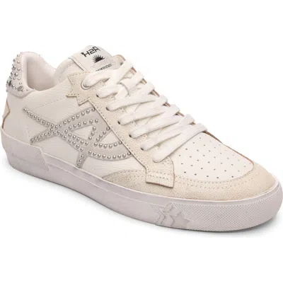 Polished studs highlight the logo appliqués of a sporty-chic sneaker grounded by a subtly distressed sole. Lace-up style Removable insole Leather upper/leather and textile lining/rubber sole Imported
