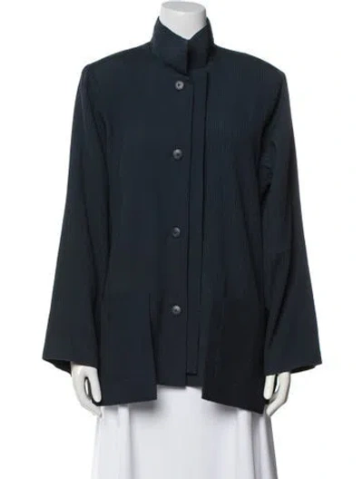 Asiatica Wool Evening Jacket Blue Stand Collar Patch Pockets & Button Closure | Asiatica Wool Evening Jacket in Blue, Women's XL