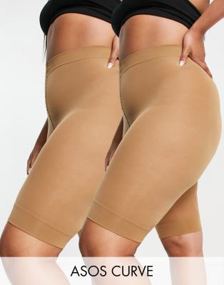 ASOS CURVE Asos Design Curve 2 Pack Anti-chafing Shorts In Golden Bronze-brown
