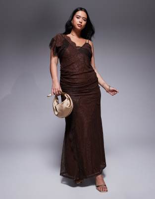 Asos Design Curve Asymmetric Lace Strappy Maxi Dress With Full Hem In Brown