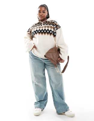 Curve & Plus Size by ASOS Curve Sweater weather Fairisle design High neck Partial zip fastening Long sleeves Oversized fit