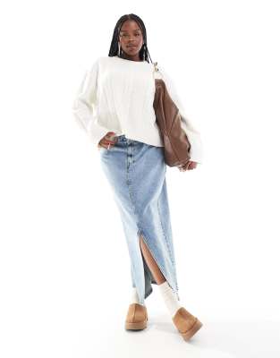 ASOS CURVE Asos Design Curve Cable Crew Neck Sweater In Cream-white