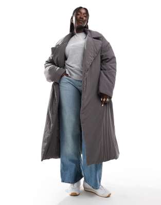 ASOS CURVE Asos Design Curve Clean Longline Puffer Coat In Charcoal-gray