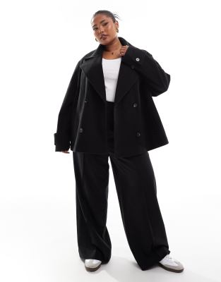 ASOS CURVE Asos Design Curve Formal Faux Wool Pea Coat In Black