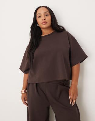 ASOS CURVE Asos Design Curve Interlock Boxy Cropped T-shirt In Brown