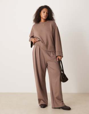 ASOS CURVE Asos Design Curve Interlock Super Wide Leg Pants In Brown