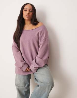 ASOS CURVE Asos Design Curve Off Shoulder Sweatshirt In Washed Purple