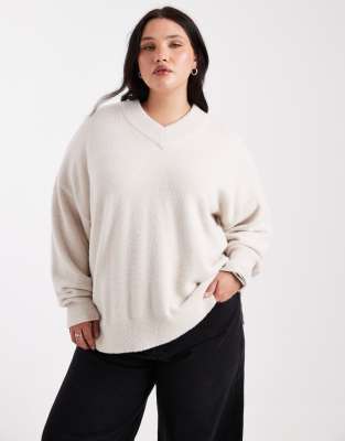 ASOS CURVE Asos Design Curve Oversized Super Soft V Neck Sweater In Neutral