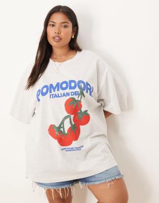 ASOS CURVE Asos Design Curve Oversized T-shirt With Pomodoro Tomato Graphic In Gray