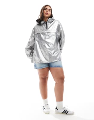 ASOS CURVE Asos Design Curve Packable Rainwear Jacket In Silver
