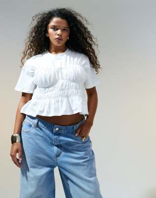 ASOS CURVE Asos Design Curve Shirred Corset Waist T-shirt In White