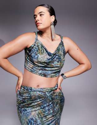Tops by ASOS Curve Part of a co-ord set Skirt sold separately Cowl neck Twist straps Cropped length Regular fit