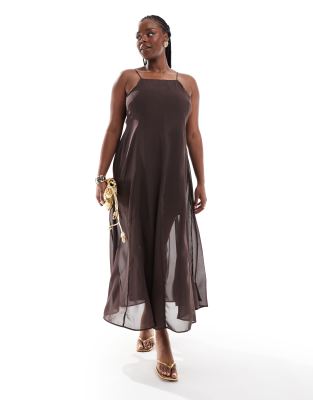 Asos Design Curve Square Neck Midi Dress With Godets In Chocolate-brown