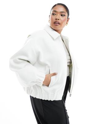 ASOS CURVE Asos Design Curve Textured Bomber Jacket With Collar Detail In Ecru-white