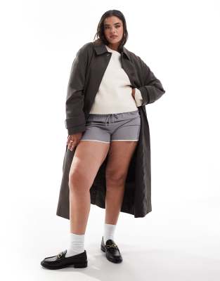 ASOS CURVE Asos Design Curve Top Collar Tailored Longline Trench Coat In Mushroom-brown