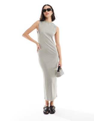 ASOS DESIGN 90s Ribbed Built Up Midi Tank Dress In Washed Gray