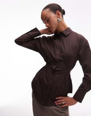ASOS DESIGN Adjustable Cinched Back Shoulder Pad Shirt In Brown