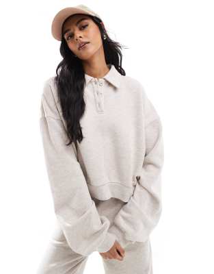 ASOS DESIGN Button Up Collared Sweatshirt In Oatmeal - Part Of A Set-neutral