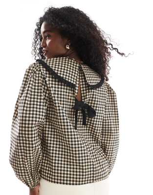 Top by ASOS DESIGN Gingham design Oversized collar Ruffle trim Long sleeves Bow to back Regular fit
