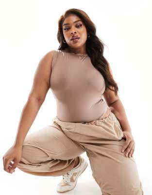 ASOS DESIGN Curve All Day Smoothing Racer Bodysuit In Taupe-brown