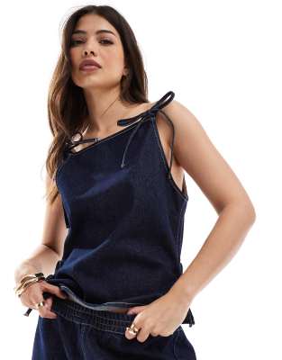ASOS DESIGN Denim Bow Cami Top In Indigo-blue