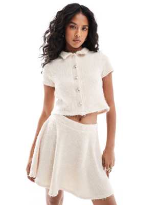 ASOS DESIGN Fluffy Flippy Mini Skirt In Cream - Part Of A Set-white