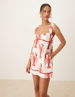 Jumpsuits & Rompers by ASOS DESIGN Lobster print Scoop neck Ruched bust Wide-cut straps Shirred, stretch panel to back Regular fit