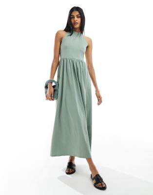 ASOS DESIGN Halter Low Back Midi Sundress In Light Green-multi